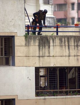 छाबडा हाऊसच्या छतावरील कमांडो खालच्या मजल्यावरील धोक्याच्या पातळीचे मूल्यांकन करताना. त्यामुळेच पाहुणे ताजमहाल हॉटेलच्या चेम्बर्स मध्ये लपून बसल्याचे अतिरेक्यांना त्यांच्या साथीदारांनी सांगितले. कारण सगळ्याचा टेलिकास्ट प्रसारमाध्यमांवर दाखवला जात होता. त्याक्षणी कोणीही मीडियाला थांबवायची किंवा टेलिकास्ट डिले करण्याची तसदी घेतली नाही. म्हणून तेथे लपलेल्या दहशतवाद्यांना आधीच ठाऊक होते की NSG चे कमांडो येत आहेत. म्हणून ते आल्यावर अतिरेक्यांनी गोळीबार केला ज्यात एक कमांडो ठार झाला. ९/११ च्या हल्ल्यानंतर अमेरिकन लोकांनी केलेल्या विस्लेषणाची जबाबदारी कोणाकडेही नव्हती. नारायणन आनंदाने त्यांच्या पदावर राहिले. (राज्यपाल बनण्या पूर्वी) तर काहींचा लोक हितासाठी बळी गेला.